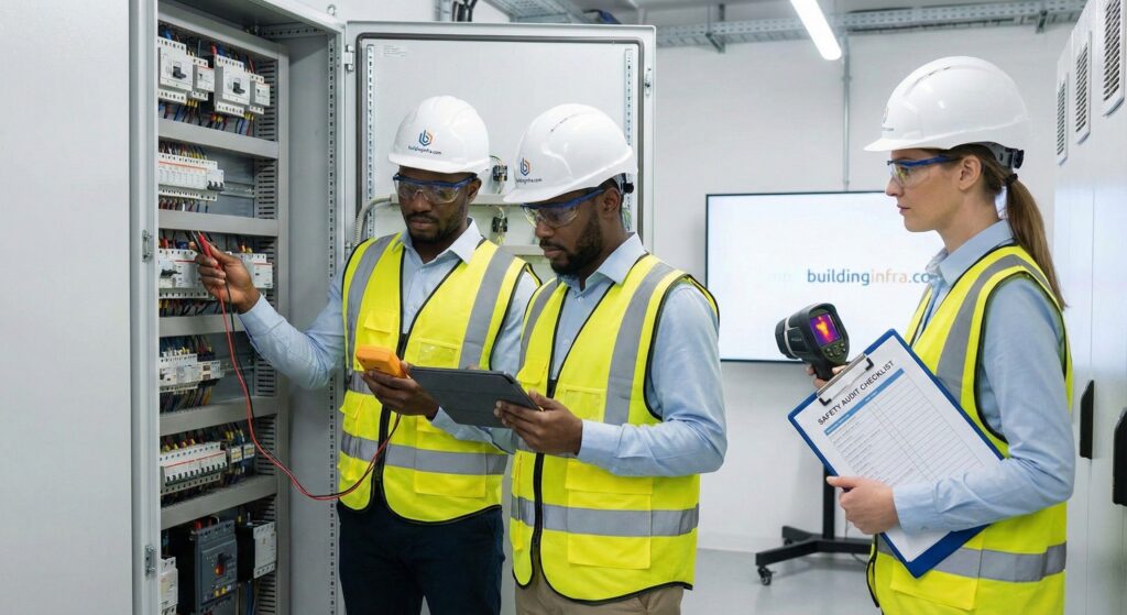 Electrical Safety Audit (ESA) of the Building and Electrical Installations should be carried out with reference to applicable Indian Standards, Indian Electricity Rules( IE) and other relevant Codes of Practice to identify potential electrical hazards to prevent or minimize accidents as under: